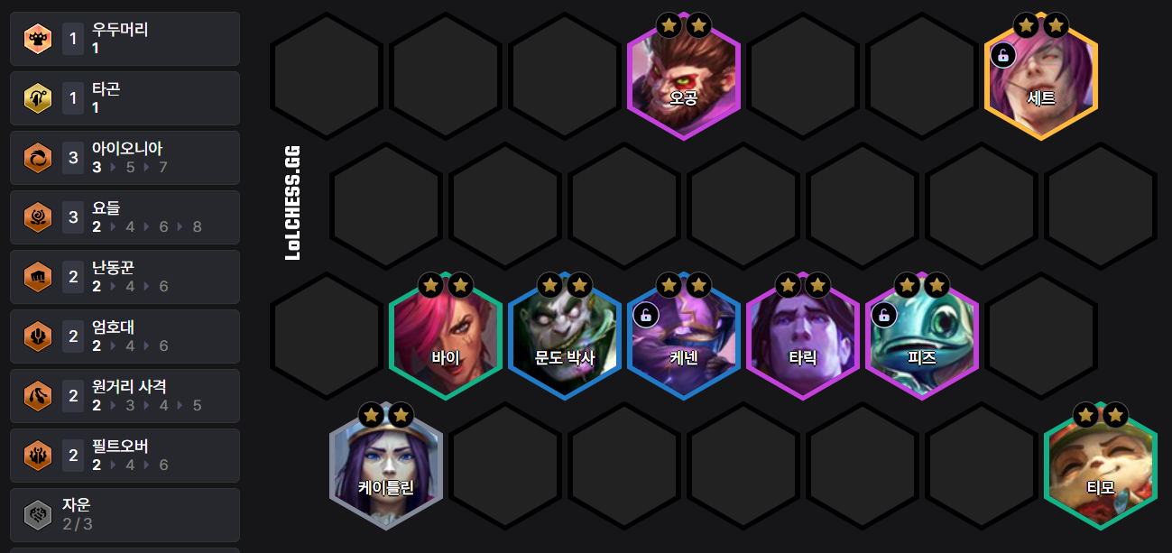 · (6) 요들 특성으로 무료 리롤을 모으고, 9레벨에 도달 후 아래 유닛을 올려 라이즈, 직스를 해금합니다.