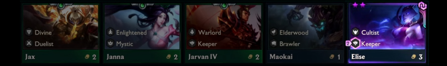 아군에 4단계 챔피언이 정확히 2명 있다면 각 4단계 챔피언이 체력을 374, 공격 속도를 24.4% 얻습니다. 무작위 4단계 챔피언 1명을 획득합니다.